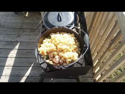 You could use your Dutch oven indoors as well. The directions for using wild rice blend instead of Rice-a-Roni will be noted at the end as the cooking method is slightly different. Recipe prep for Sausage, Peppers, and Rice Outdoor Camp Oven . Heat coals in a charcoal chimney. Once hot, place 12 coals on bottom (camp table, fire pit, etc).