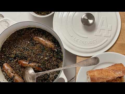 Lentil Poached Sausages in a Los Angeles Dodgers Round...